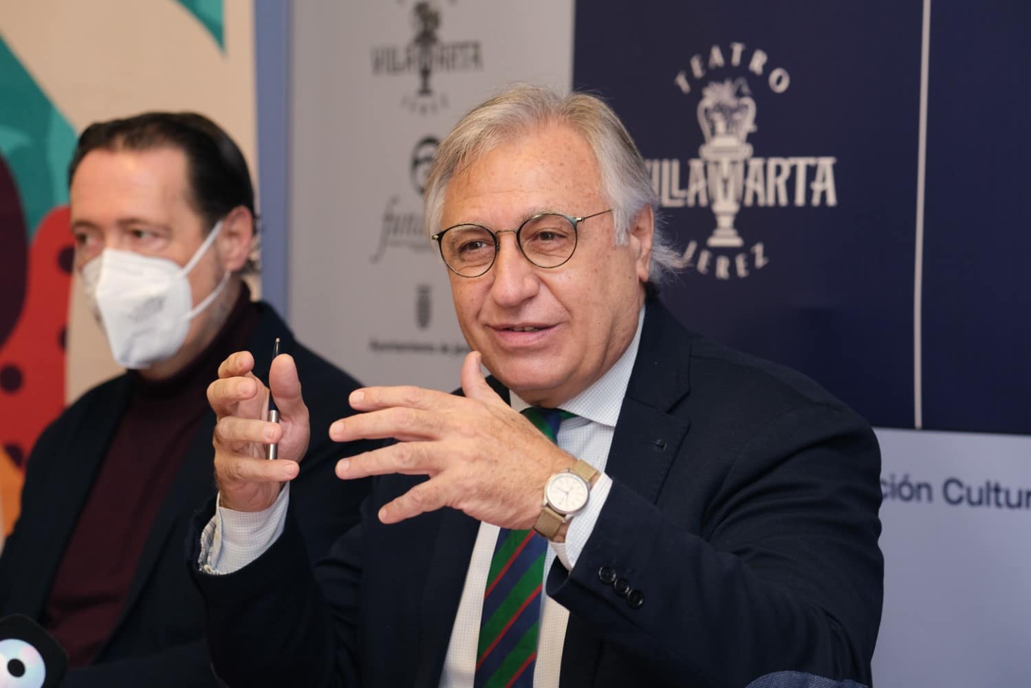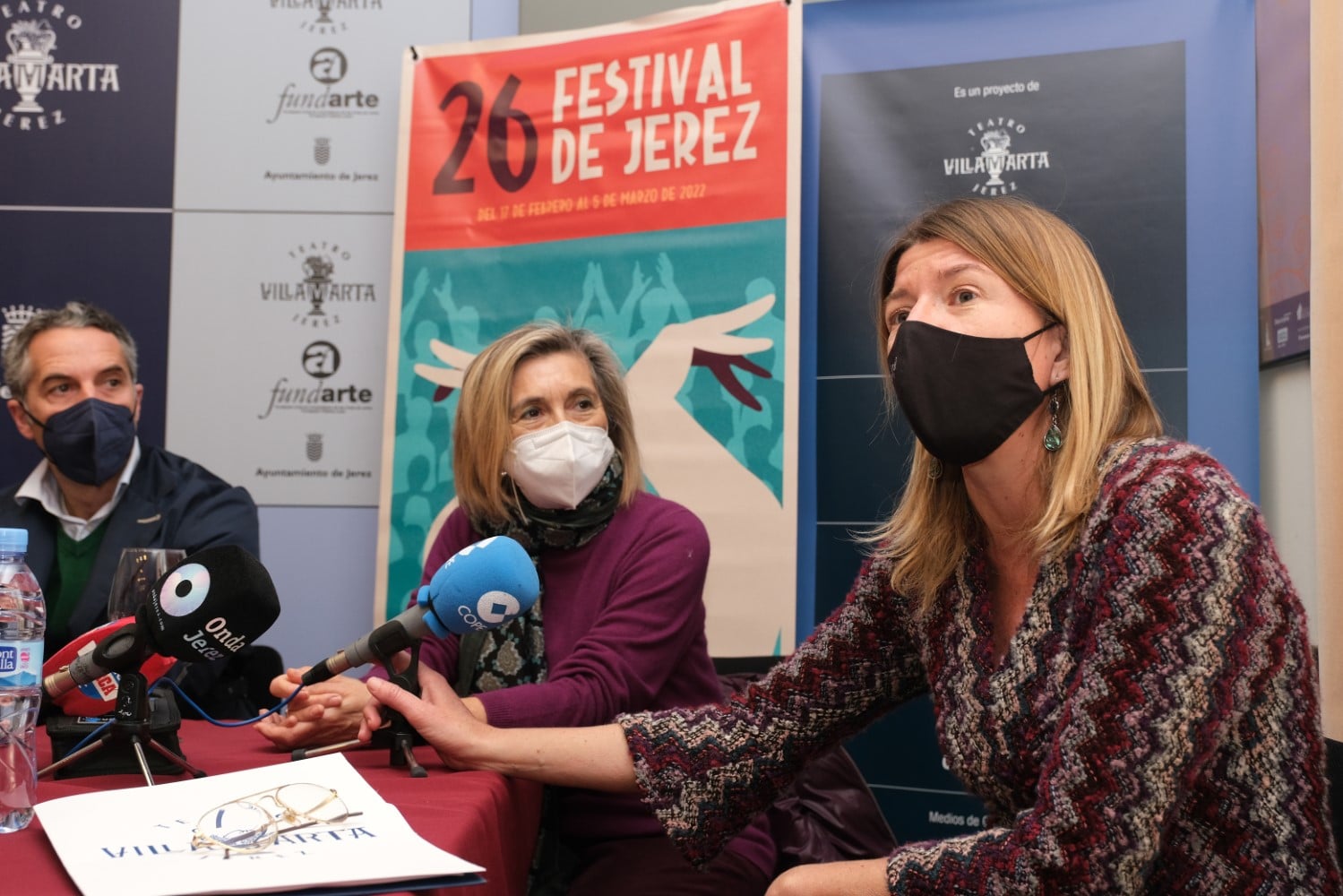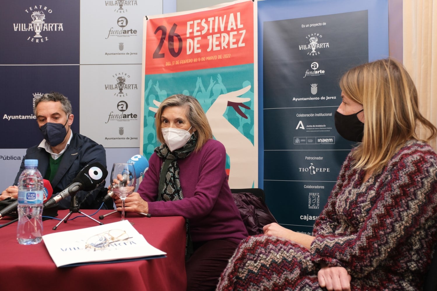 El Teatro Villamarta ha acogido el acto de presentación de las actividades complementarias a la XXVI edición del Festival de Jerez. Al evento han acudido Francisco Camas, teniente de Alcaldesa de Dinamización Cultural y Patrimonio Histórico del Ayuntamiento de Jerez, Isamay Benavente, directora del Festival, María del Mar Díez Mieres, delegada de la Fundación Cajasol en Jerez, así como distintos representantes de otras entidades e instituciones que colaboran con los ciclos presentados.