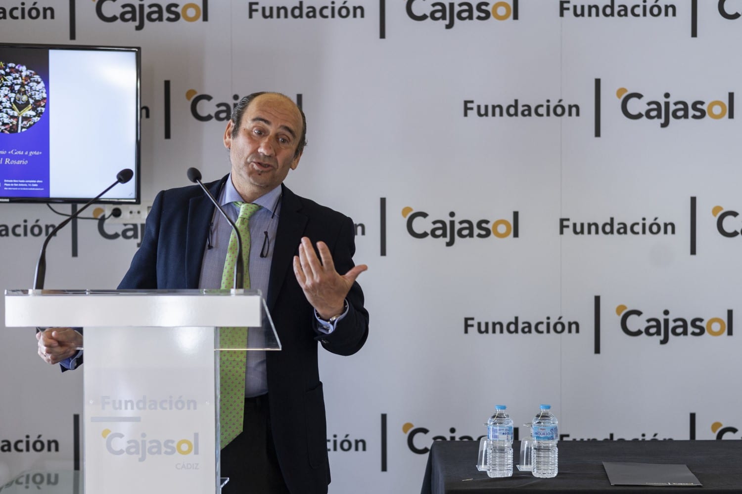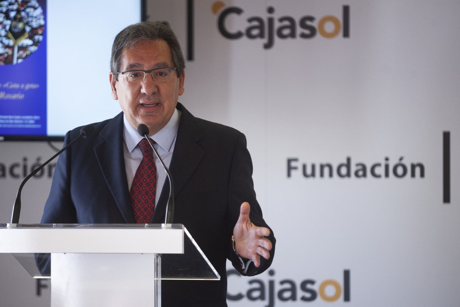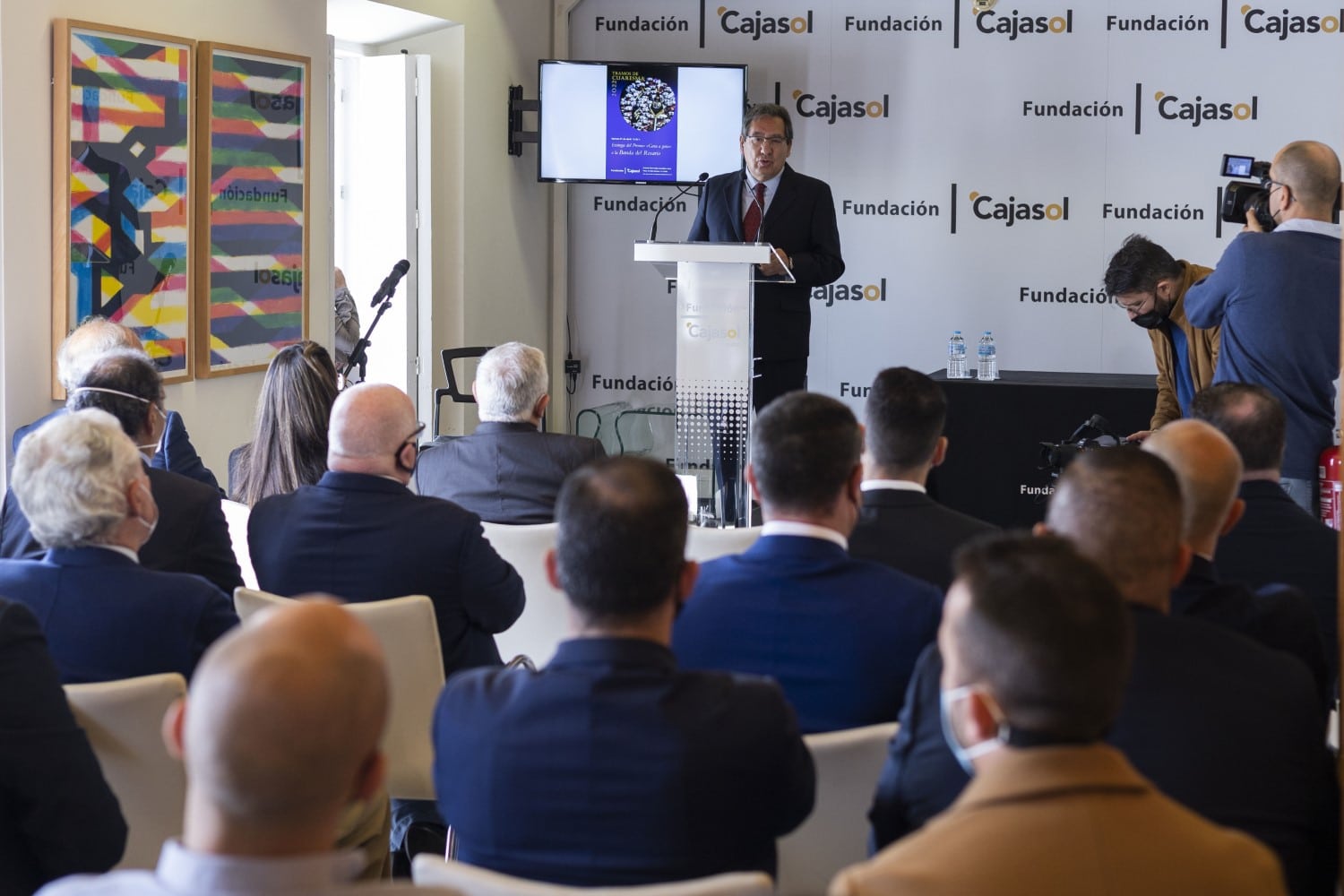 El acto, presentado por la periodista Mayte Huget, contó, entre otras personalidades, con el presidente de la Fundación Cajasol, Antonio Pulido Gutiérrez; el Obispo de Cádiz, Rafael Zornoza Boy; la concejala de cultura y fiestas en el Ayuntamiento, Lola Cazalilla, y Manuel Bernal y Sergio Figueroa, fundador y vicepresidente de la Banda del Rosario de Cádiz.