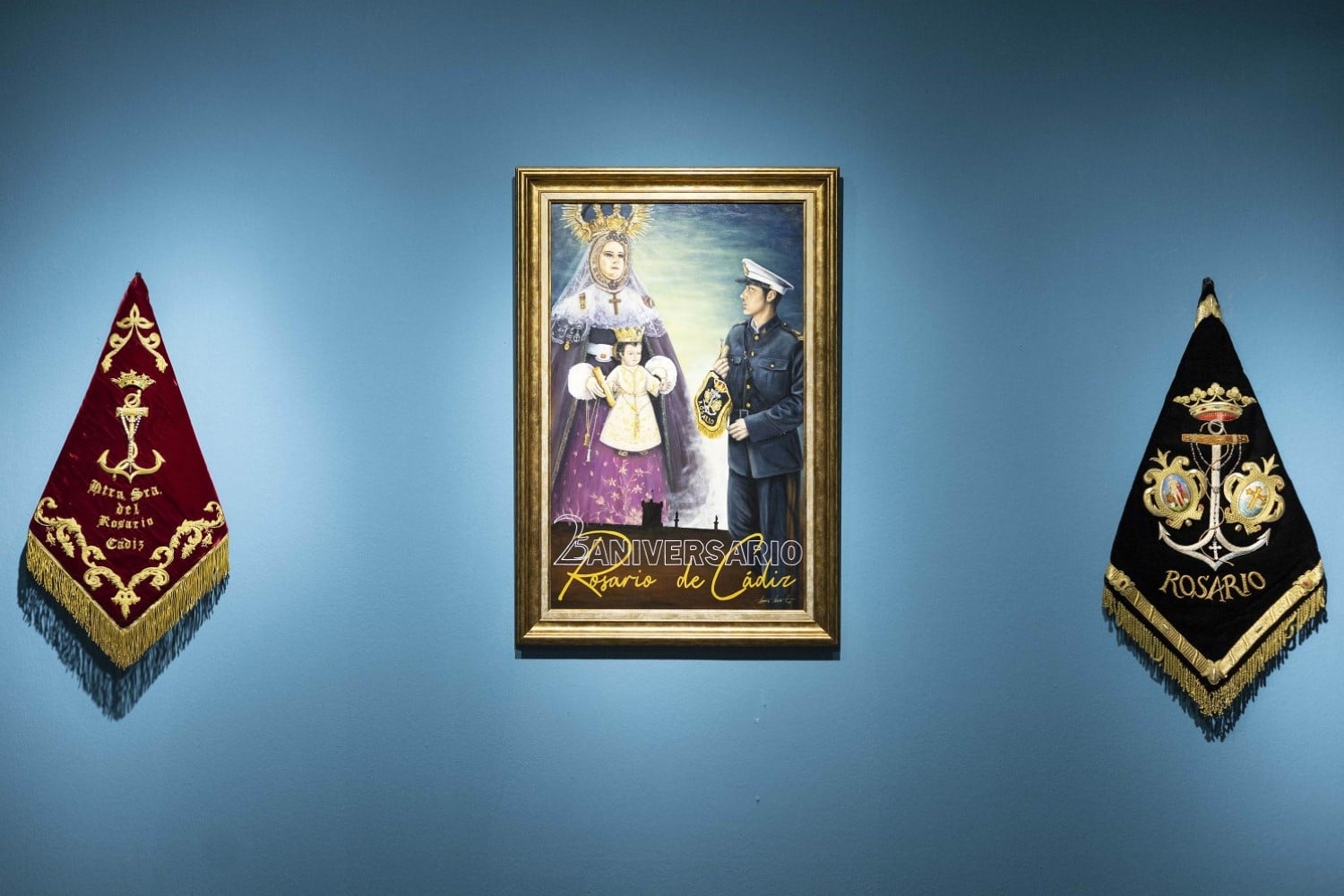 La exposición conmemora el 25 aniversario de la Banda del Rosario de Cádiz con un centenar de piezas que muestran un repaso cronológico de la historia de las diferentes bandas de cornetas y tambores que han existido en Cádiz. Se pueden contemplar objetos como banderines, instrumentos, partituras, uniformes y otras piezas relacionadas con la música profesional de la agrupación gaditana.