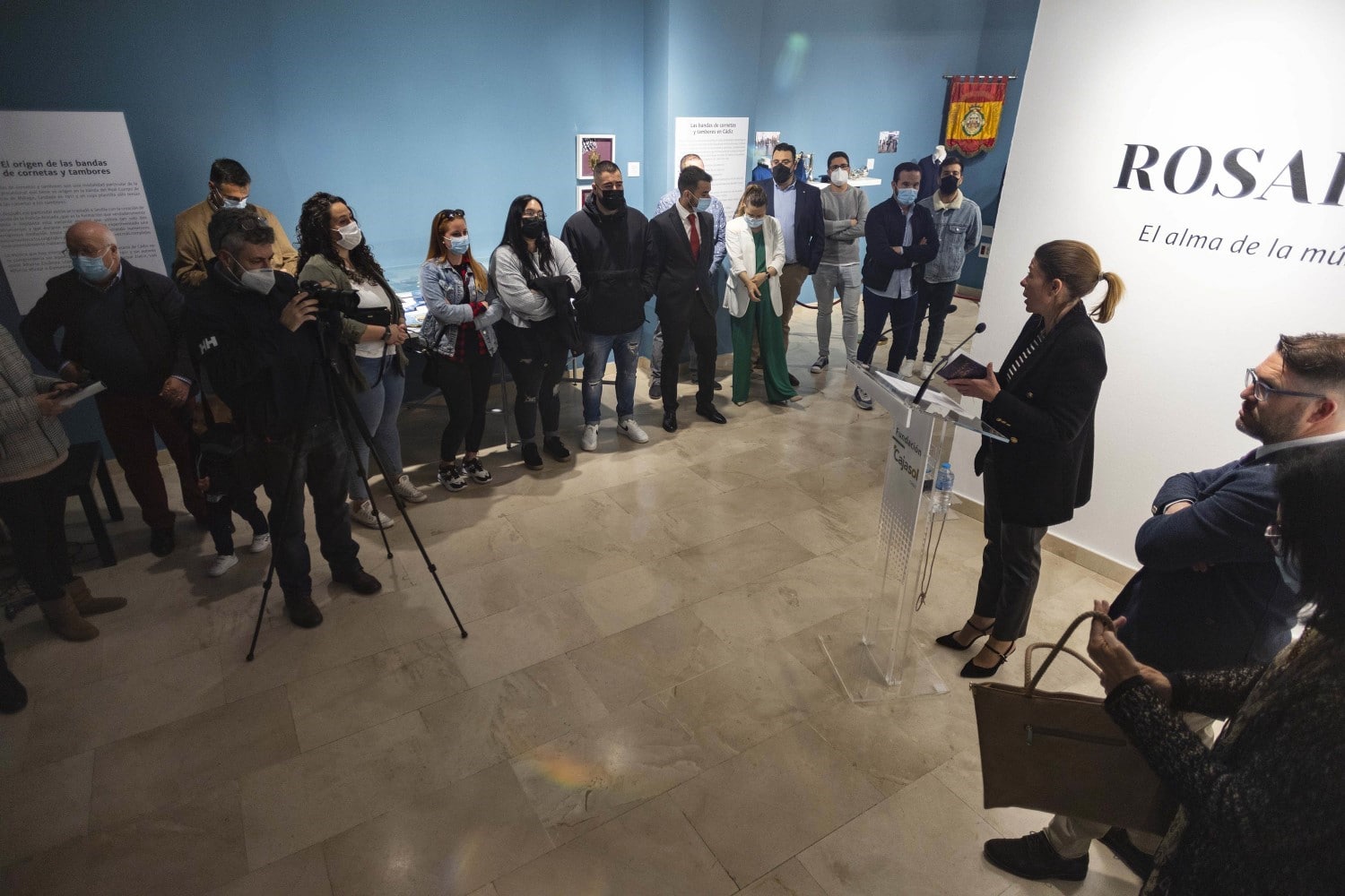 El acto de inauguración ha contado con la presencia de María del Mar Díez, delegada de la Fundación Cajasol en Cádiz, que ha destacado la importancia de la música en la Semana Santa, afirmando los valores educativos y de convivencia que infunde la Banda del Rosario.