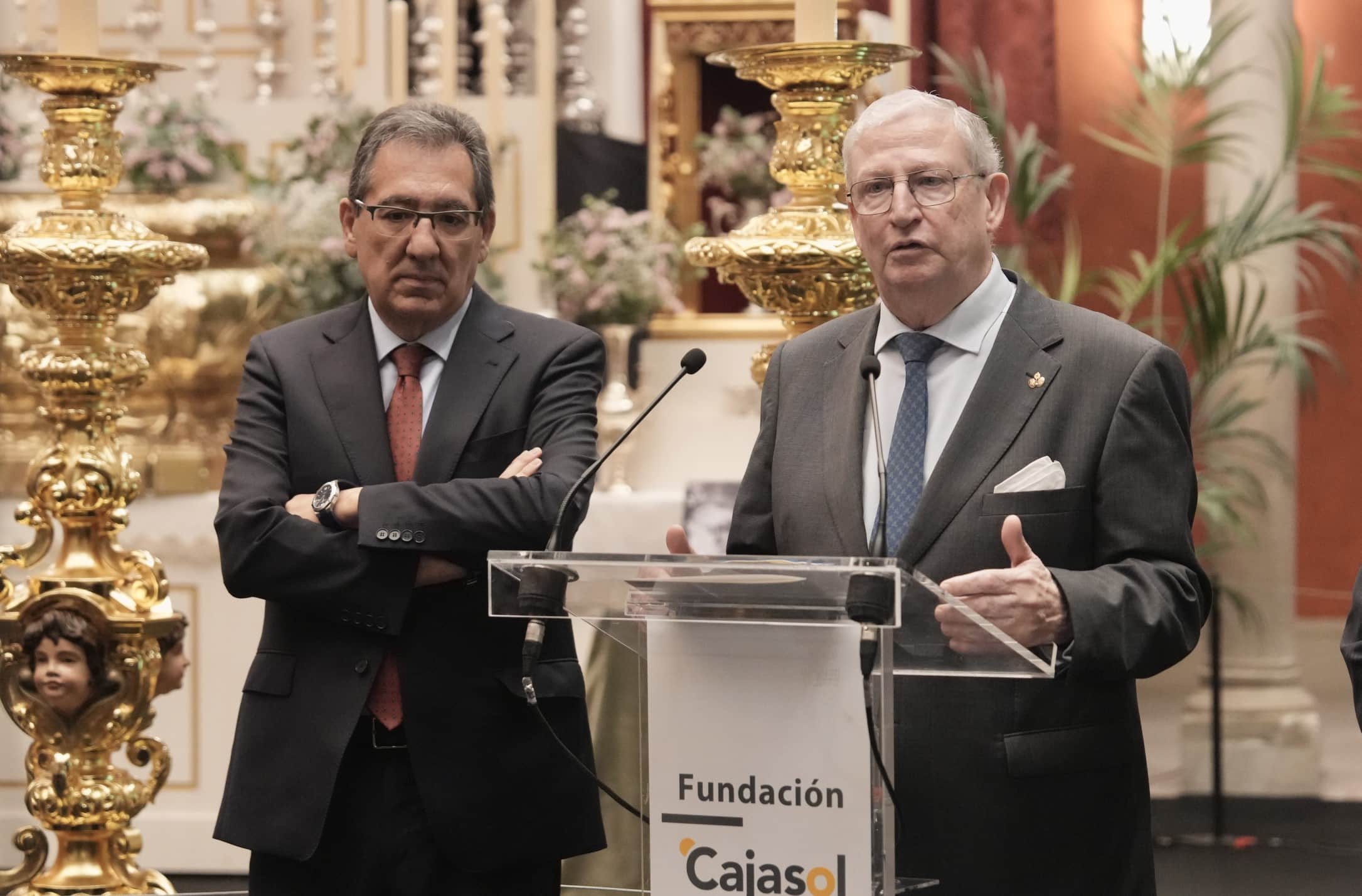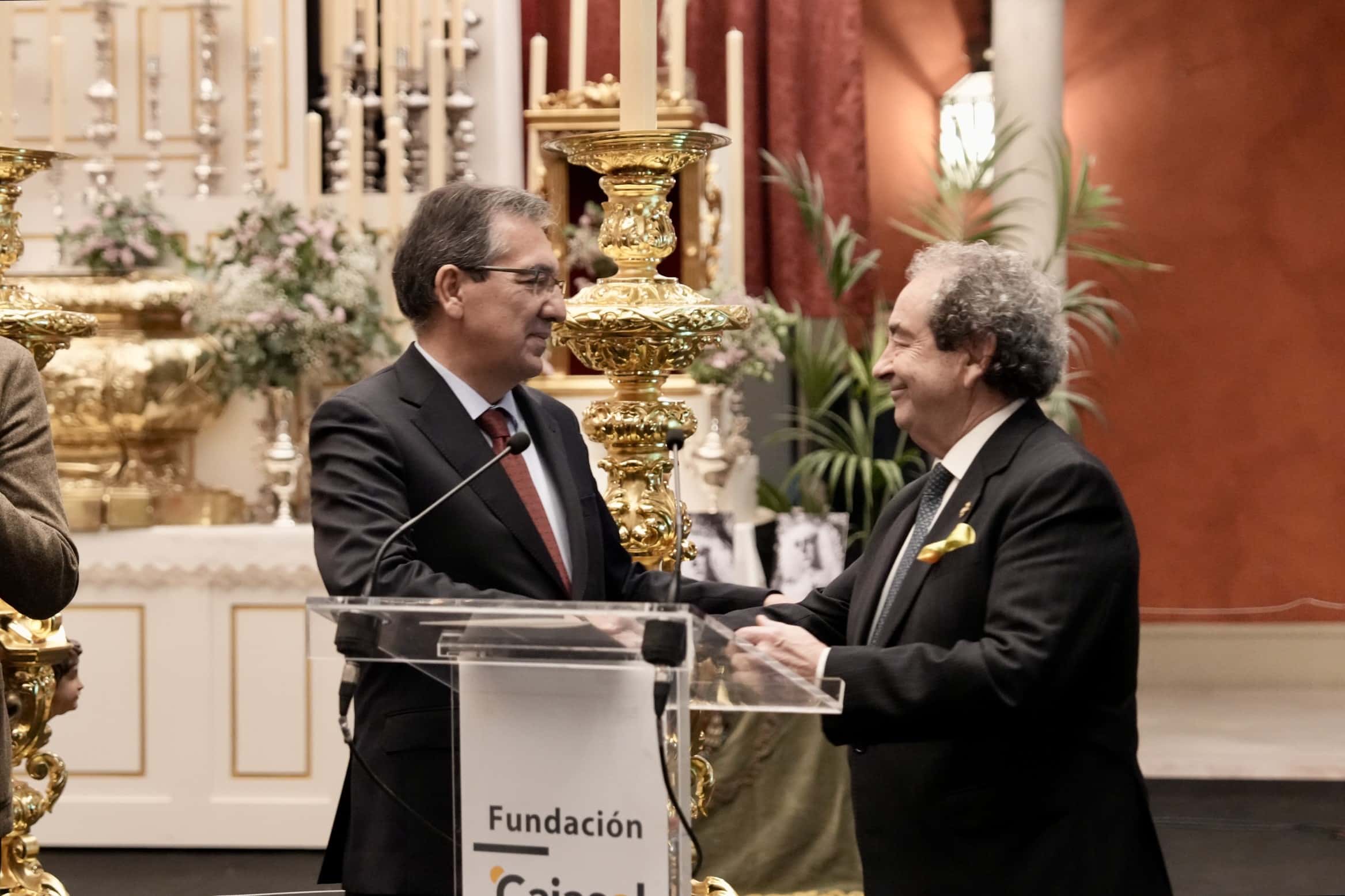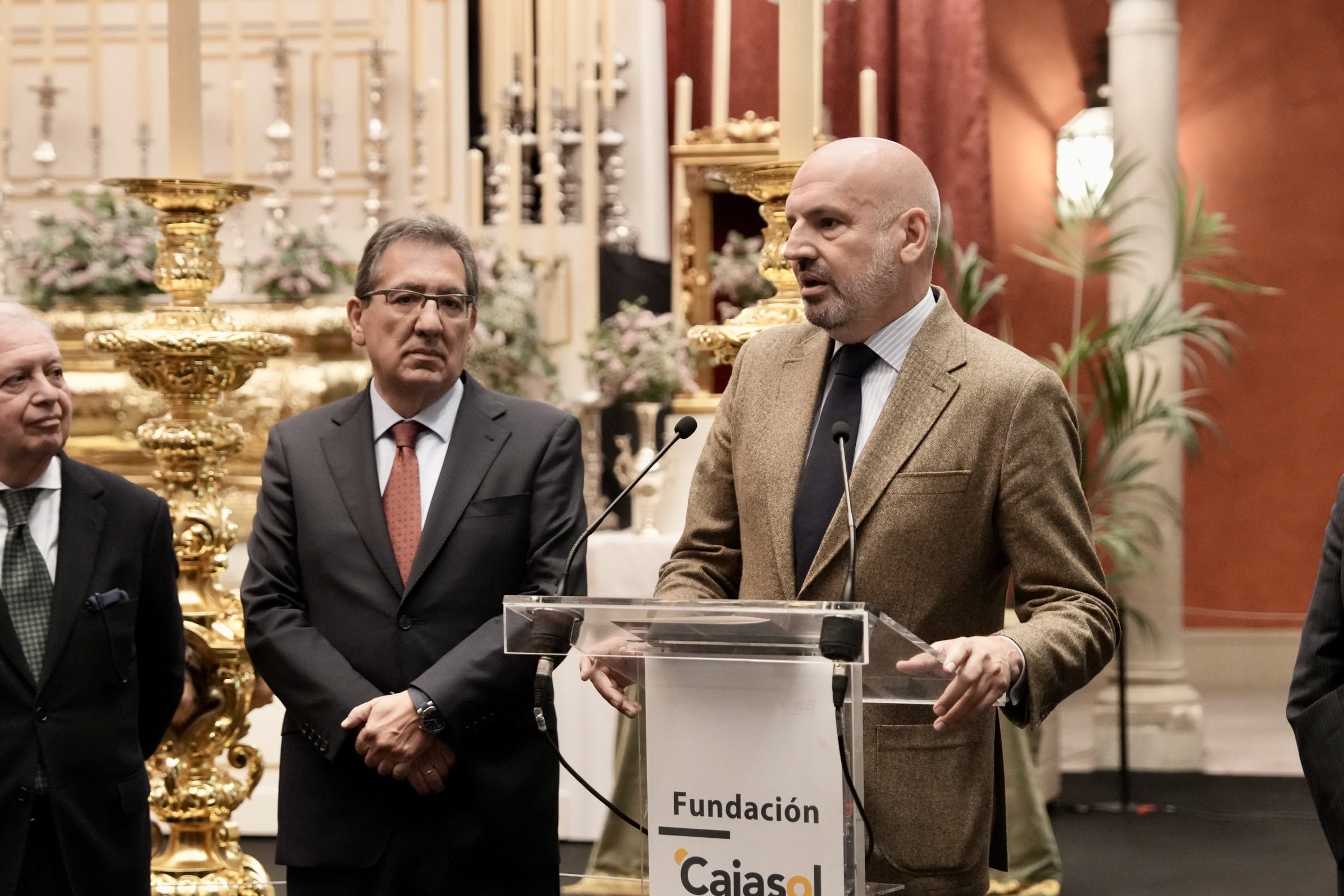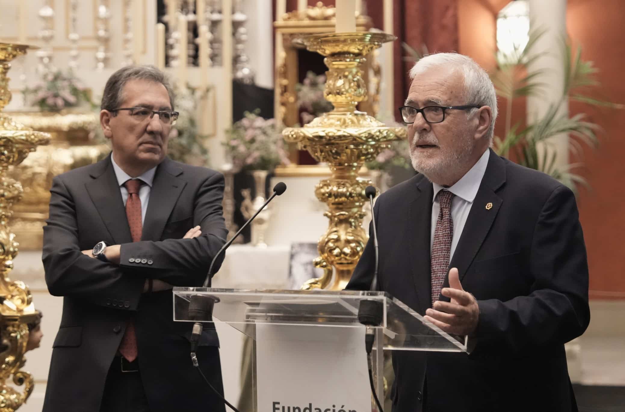 El acto de inauguración ha contado con la presencia de Antonio Pulido, presidente de la Fundación Cajasol; Manuel Alés, delegado de Fiestas Mayores del Ayuntamiento de Sevilla; Francisco Vélez, presidente del Consejo de Hermandades de Sevilla; Carlos Colón, Gabriel Ferras, Eladio de León y Esperanza de León Martínez, comisarios de la muestra; y José Antonio Fernández, hermano mayor de la Hermandad de la Macarena.