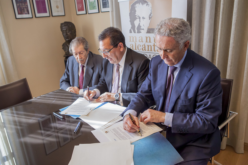 noviembre 12, 2015 | Convenios, Cultura, UncategorizedAntonio Pulido, presidente de la Fundación Cajasol, y Antonio Pedraza, presidente de la Fundación Manuel Alcántara, han firmado este jueves 12 de noviembre un convenio de colaboración por el cual Fundación Cajasol se convierte en uno de sus principales colaboradores, fomentando la literatura y la cultura en la provincia de Málaga. Antonio Pedraza considera que «es muy importante para la Fundación Manuel Alcántara que pase a formar parte de su élite de mecenas instituciones como Fundación Cajasol, que tiene una importante y reconocida labor nacional en este epígrafe. Este acuerdo es sólo el inicio de importantes colaboraciones en el futuro, que estarán siempre localizadas en Málaga y su provincia».