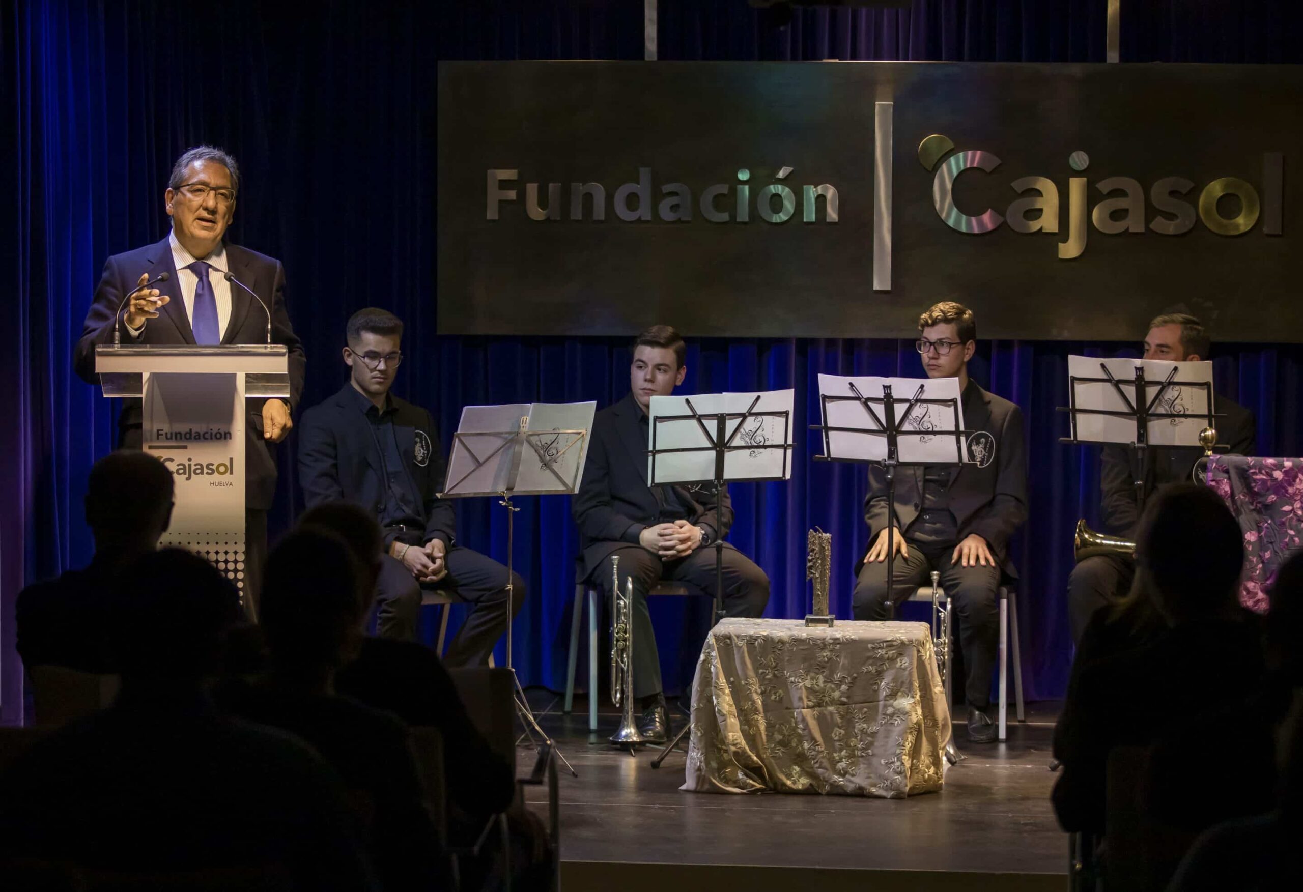 Al acto, que ha contado con la presentación de Pepelu Martínez y las actuaciones de la formación Stabat Mater y la cantaora Regina, han asistido Pilar Miranda, alcaldesa de Huelva, y Antonio Pulido Gutiérrez, presidente de la Fundación Cajasol.